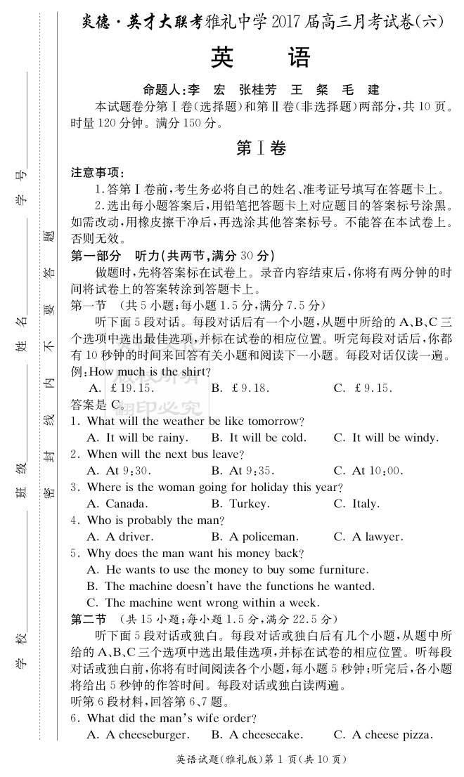 下一篇:【語文】炎德英才大聯考2017雅禮中學高三6次月考