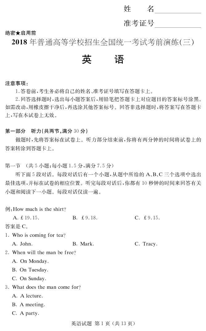 下一篇:【語文】2018年普通高等學校招生全國統(tǒng)一考試考前演練(三)