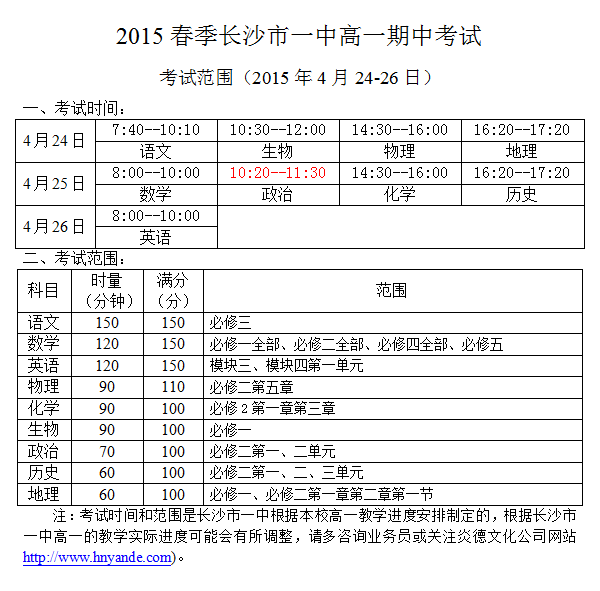 來源:炎德文化點擊:2015-04-14 16:45:29收藏本文當前位置:考試范圍 長沙一中 高一 正文