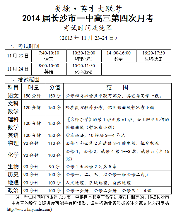 上一篇:炎德英才大聯考長沙市一中2014屆高三第3次月考考試時間和范圍(2013.10.26-27)
