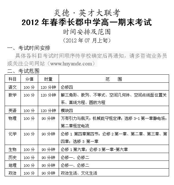 來源:炎德文化點擊:2012-04-06 17:17:48收藏本文當前位置:考試范圍 長郡中學 高一 正文