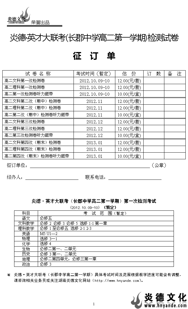 來源:炎德文化點擊:2012-09-22 14:42:52收藏本文當(dāng)前位置:考試范圍 長郡中學(xué) 高二 正文