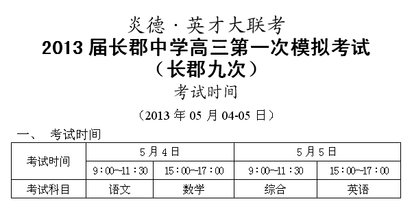來源:點擊:2013-05-02 09:03:48收藏本文當前位置:考試范圍 長郡中學 高三 正文