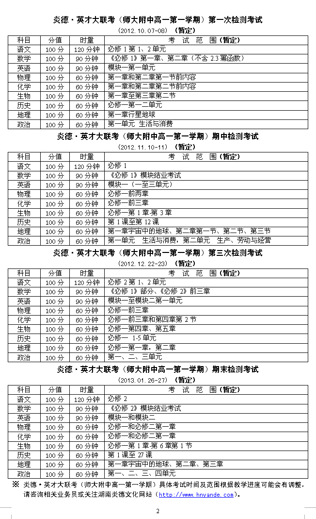 下一篇:2012年秋季師大附中高一高二期中考試(第二次月考)時間范圍(2012.11.07-10)