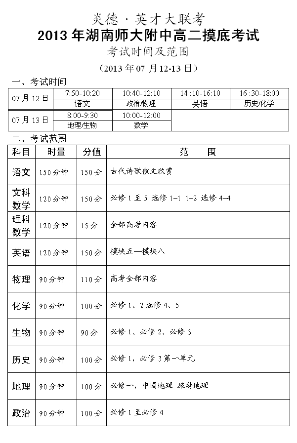 下一篇:2013年秋季師大附中高二入學摸底考試時間和范圍(2013.08.30-31)