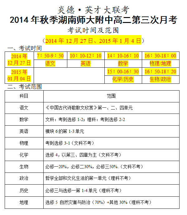 上一篇:炎德英才大聯考2014年秋季湖南師大附中高二期中考試時間和范圍(2014.11.12-14)
