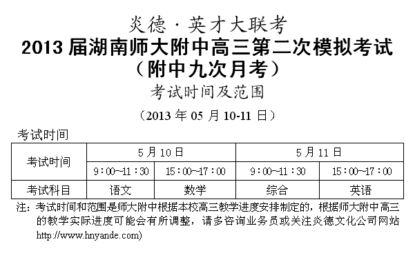下一篇:炎德英才大聯考師大附中2013屆高三第十次月考考試時間和范圍
