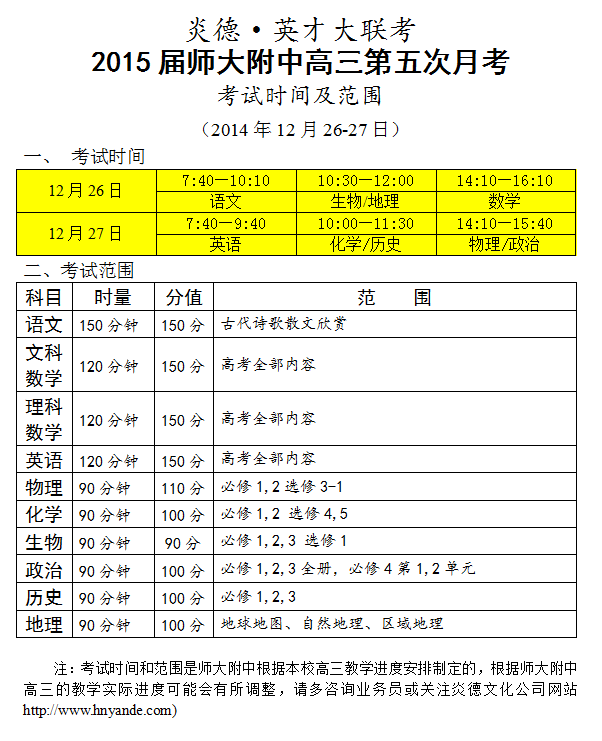 上一篇:炎德英才大聯考師大附中2015屆高三第4次月考考試時間和范圍(2014.11.28-29)