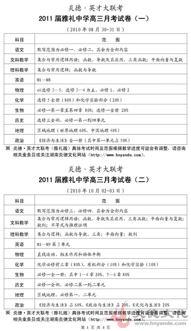 來源:本站原創點擊:2010-08-17 11:48:25收藏本文當前位置:考試范圍 雅禮中學 高三 正文