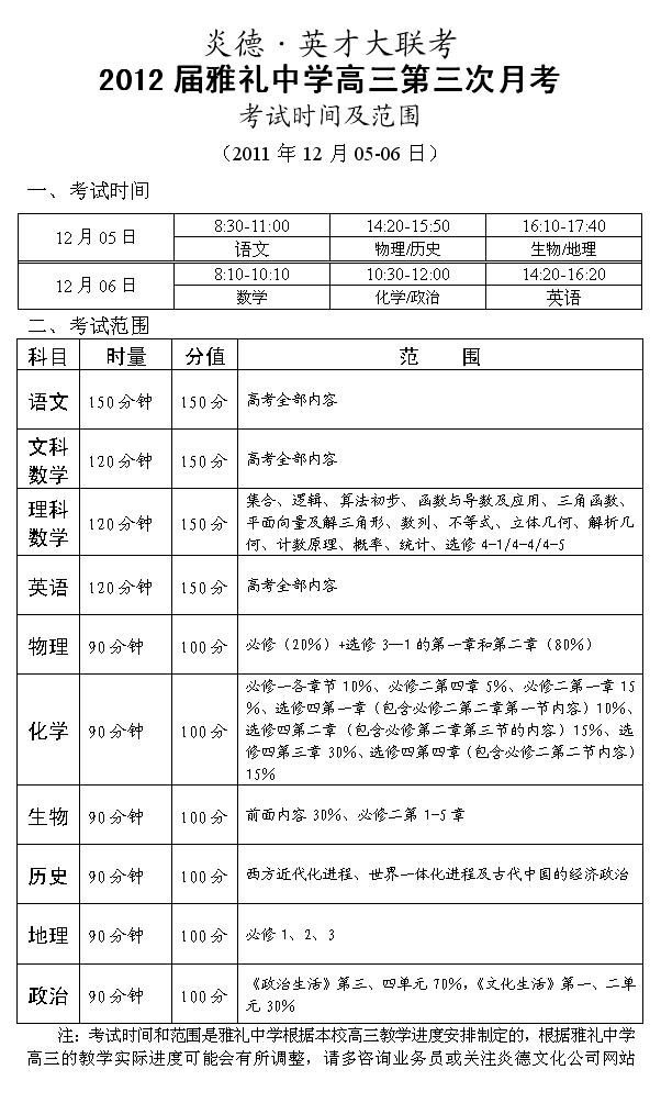 下一篇:炎德英才大聯考雅禮中學2012屆高三第四次月考考試時間和范圍