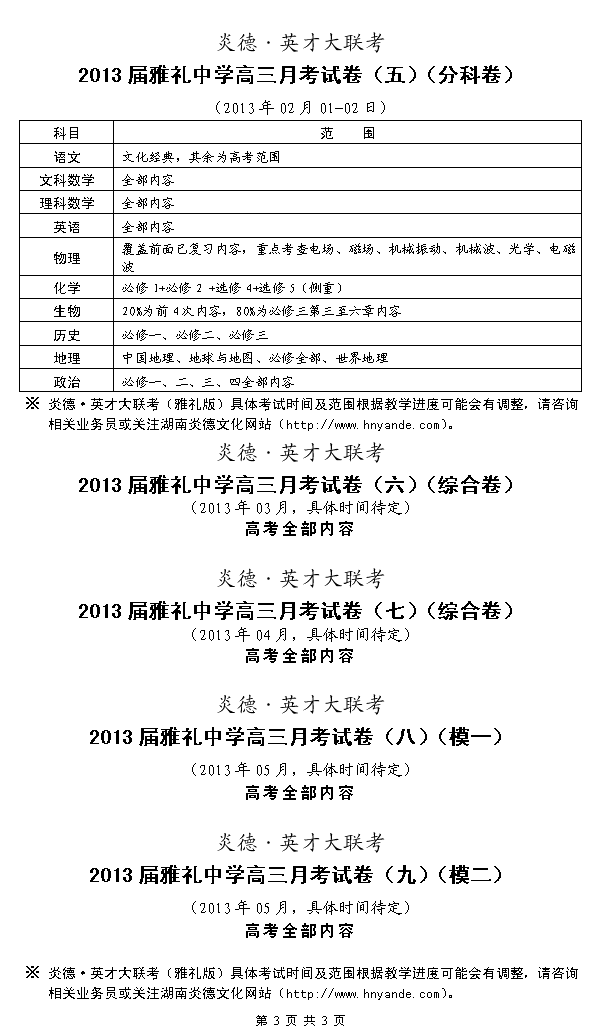 來源:炎德文化點(diǎn)擊:2012-09-11 14:46:11收藏本文當(dāng)前位置:考試范圍 雅禮中學(xué) 高三 正文