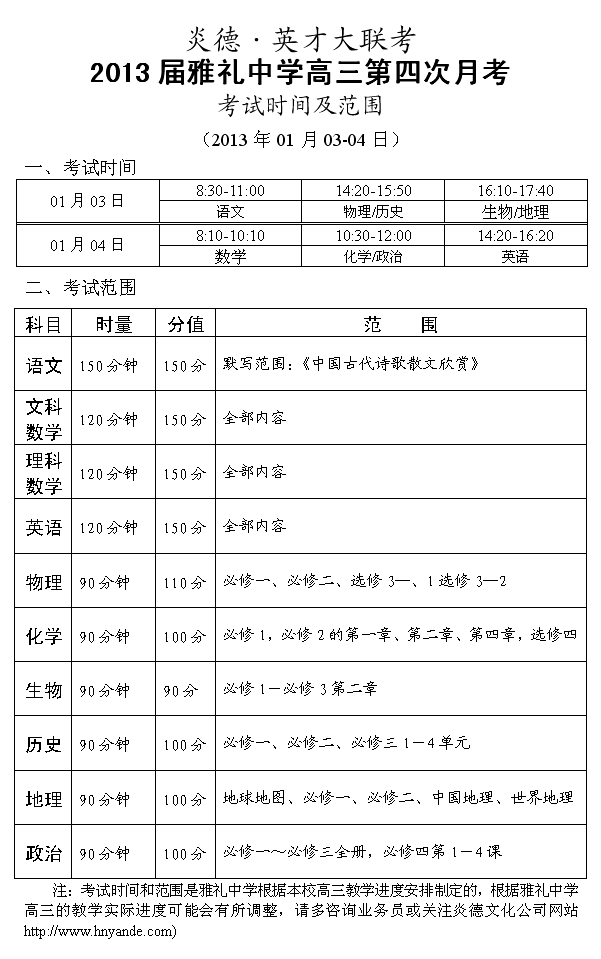 上一篇:炎德英才大聯考雅禮中學2013屆高三第三次月考考試時間和范圍