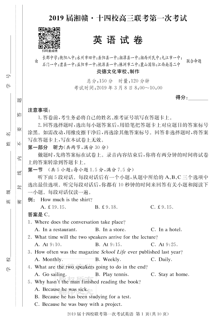 上一篇:【物理】炎德英才大聯考2019長郡中學高三7次月考(十四校聯考一)