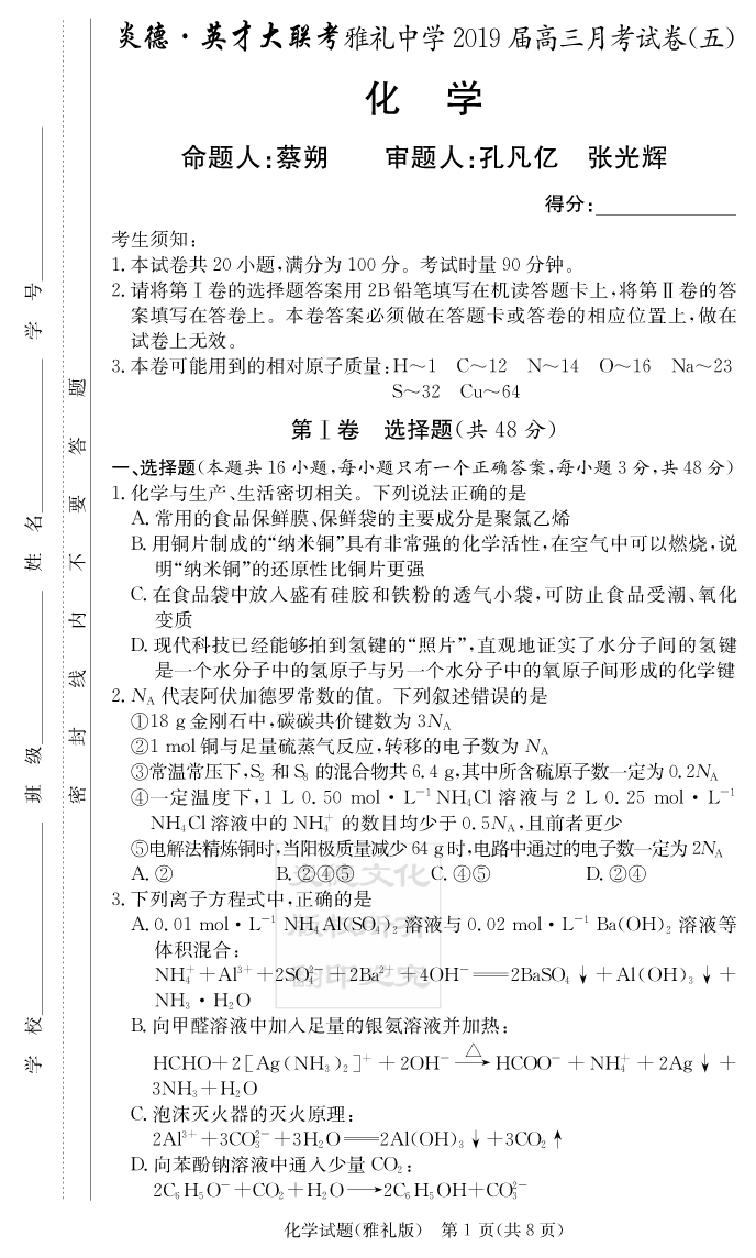 下一篇:【理數】炎德英才大聯考2019雅禮中學高三5次月考
