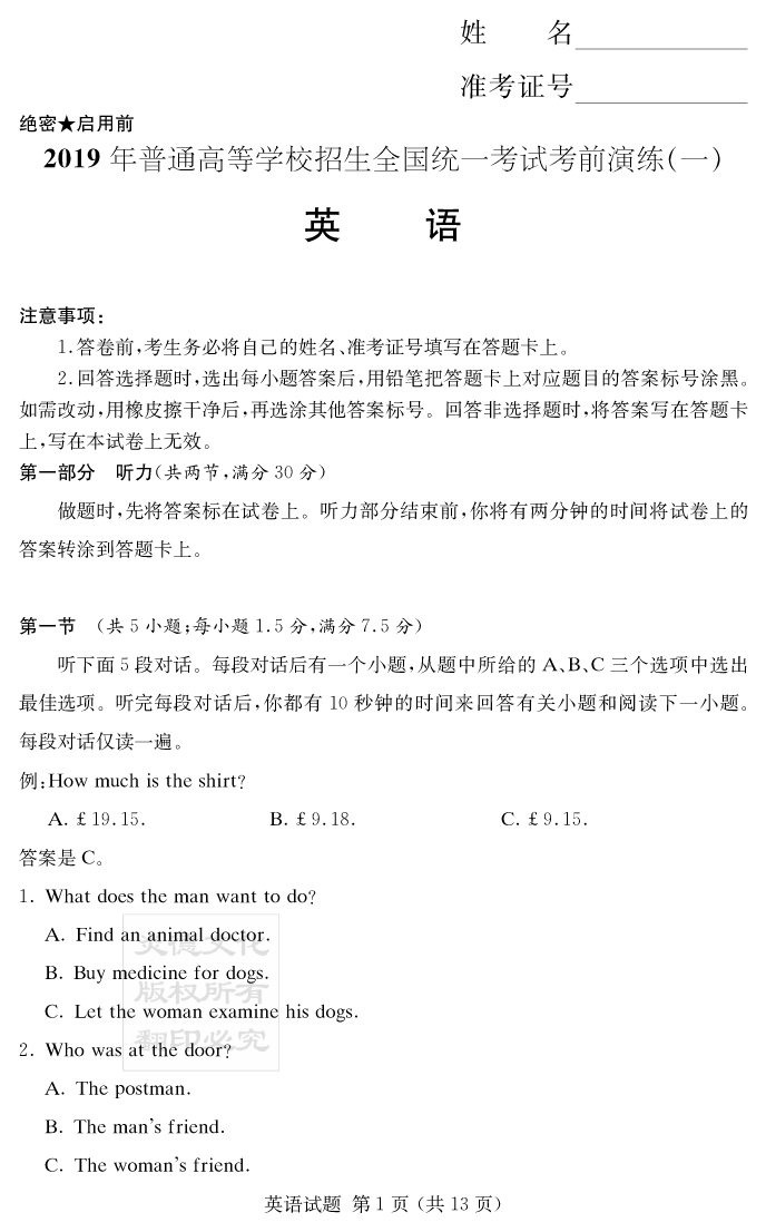 下一篇:【語文】2019年普通高等學校招生全國統一考試考前演練(一)