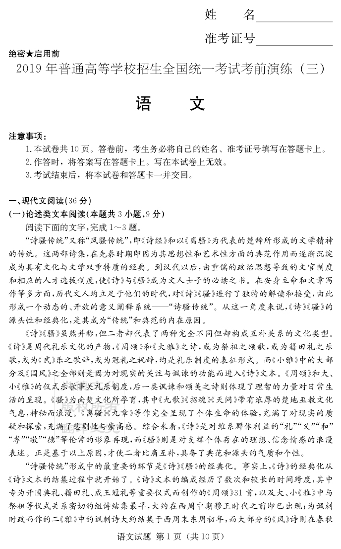 上一篇:【英語】2019年普通高等學校招生全國統一考試考前演練(三)