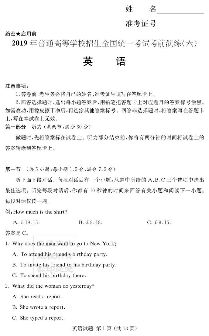 下一篇:【語文】2019年普通高等學校招生全國統一考試考前演練(六)