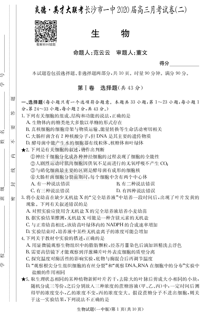 上一篇:【歷史】炎德英才大聯考2020屆長沙市一中高三2次月考