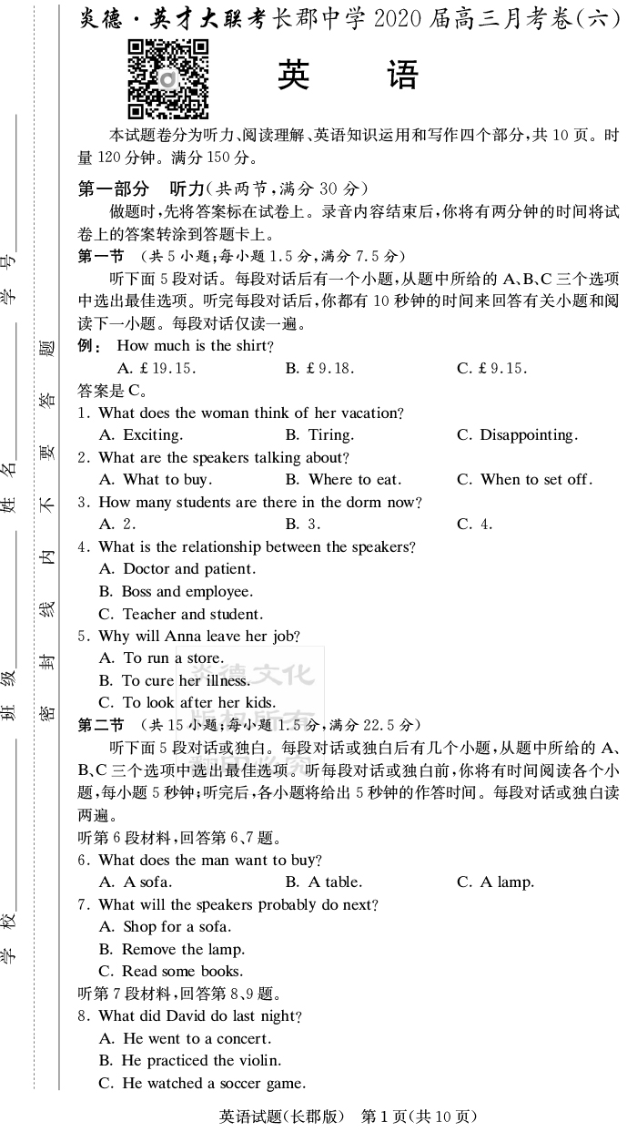 上一篇:【文綜】炎德英才大聯考2020屆長郡中學高三6次月考