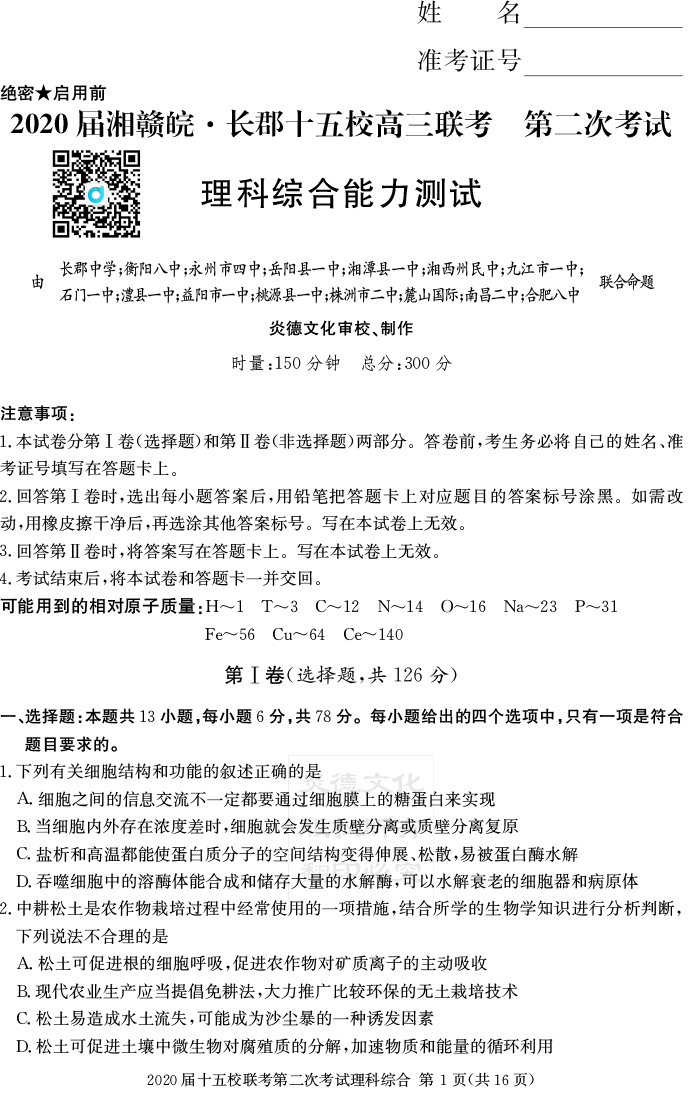 下一篇:【文數】炎德英才大聯考2020屆長郡中學高三8次月考(十五校聯考一)