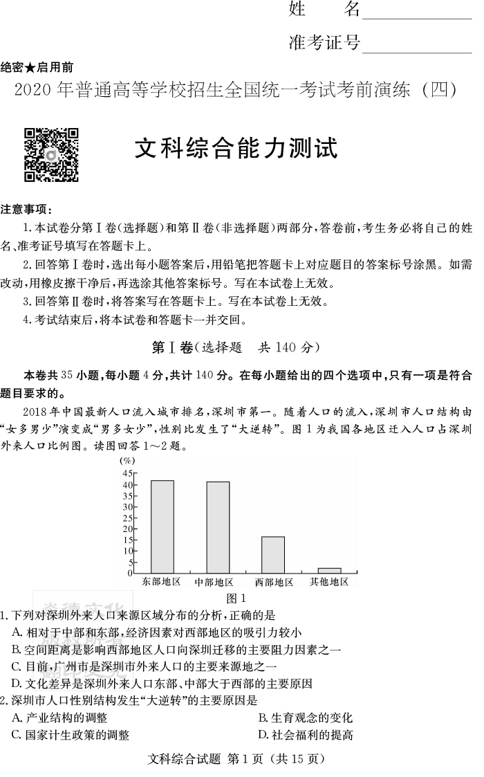 【文綜】2020年普通高等學校招生全國統一考試考前演練(四)