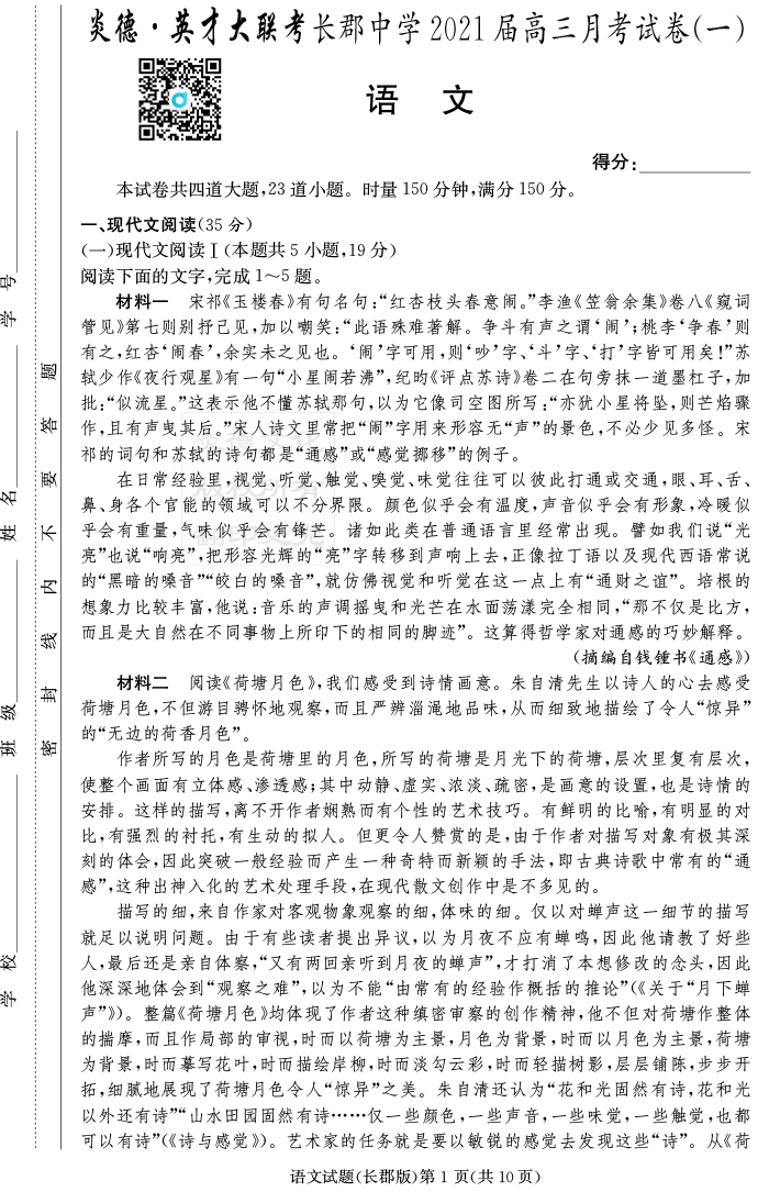 上一篇:【英語】炎德英才大聯考2021屆長郡中學高三1次月考