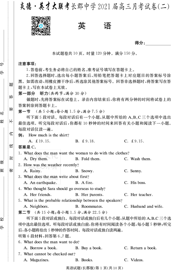 | 資源類別: | 名校月考 | |