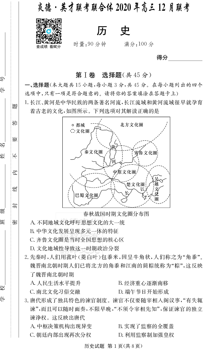 下一篇:【生物】炎德英才大聯(lián)考2021屆長(zhǎng)郡中學(xué)高三4次月考(高三聯(lián)合體12月聯(lián)考)