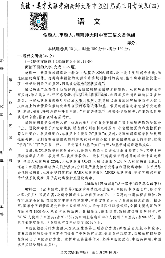 上一篇:【英語】炎德英才大聯考2021屆湖南師大附中高三4次月考