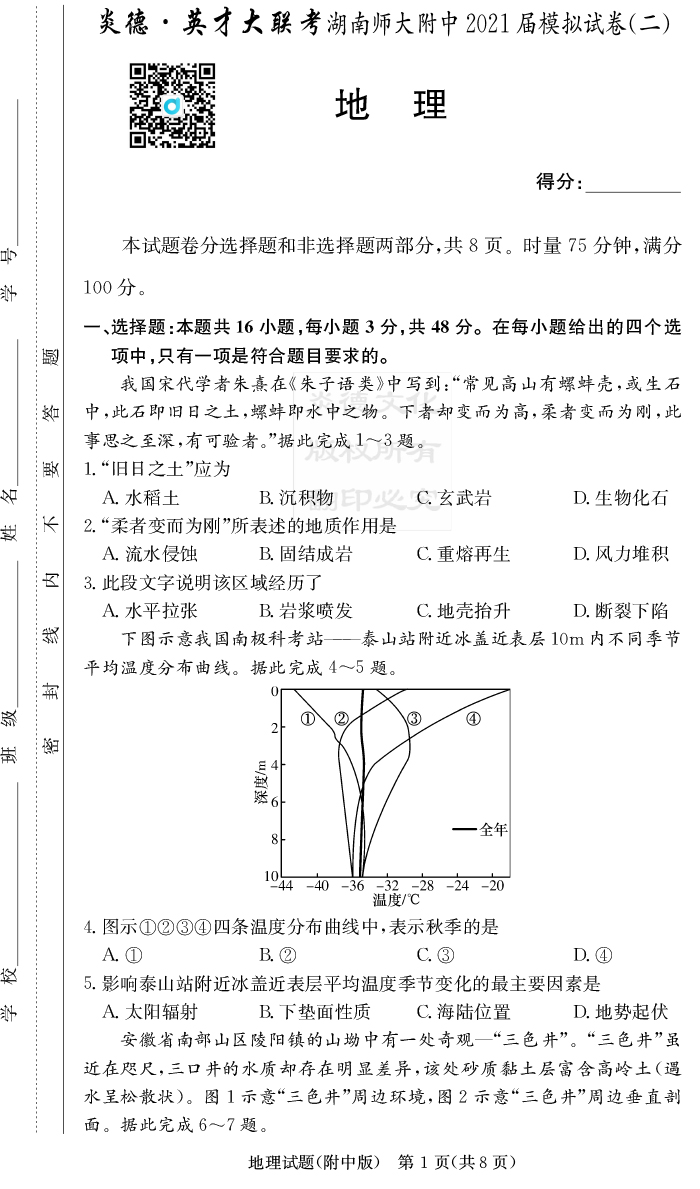 上一篇:【政治】炎德英才大聯考2021屆湖南師大附中高三8次月考(模擬一)
