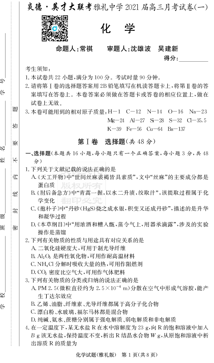 2025名師導學·名校名卷經(jīng)典試題匯編·化學