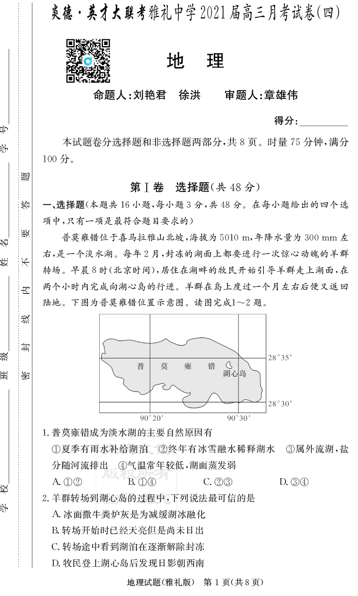 上一篇:【政治】炎德英才大聯考2021屆雅禮中學高三3次月考