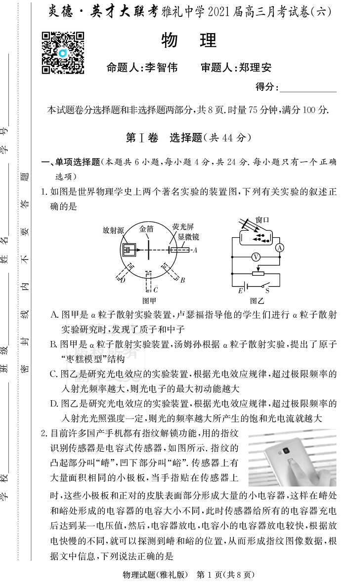 2026高考總復習單元同步滾動測試卷·物理