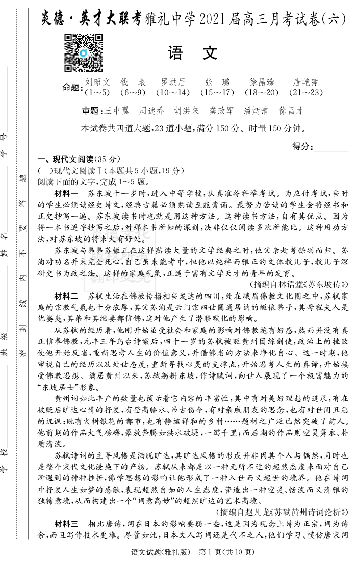 下一篇:【政治】炎德英才大聯考2021屆雅禮中學高三6次月考