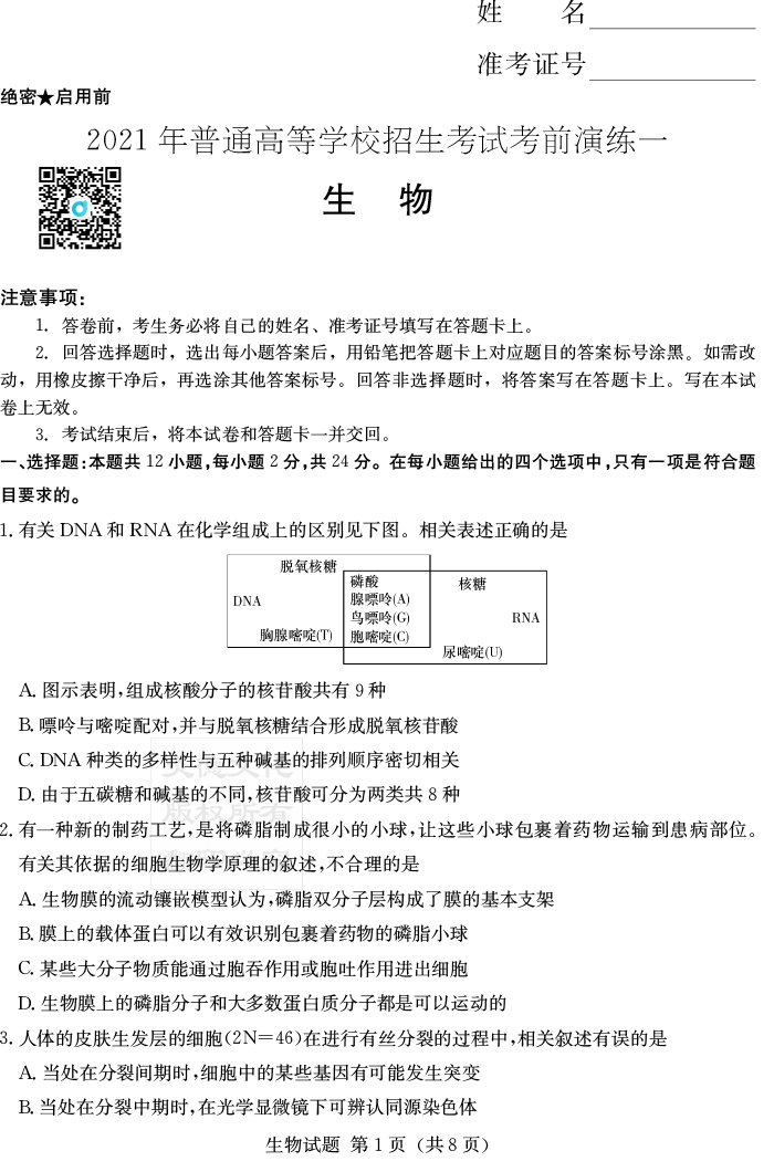 下一篇:【數學】2021年普通高等學校招生全國統一考試考前演練(一)