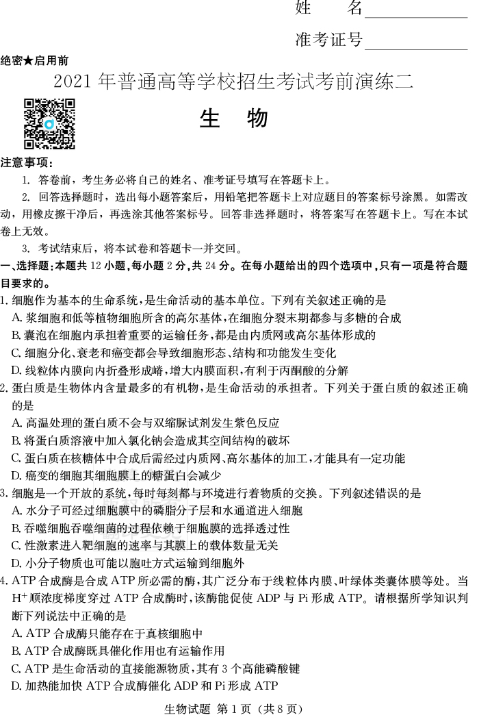 上一篇:【歷史】2021年普通高等學校招生全國統(tǒng)一考試考前演練(二)