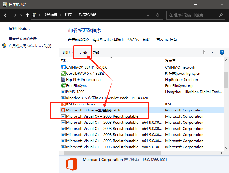 2. 找到Office的相關軟件,進行卸載