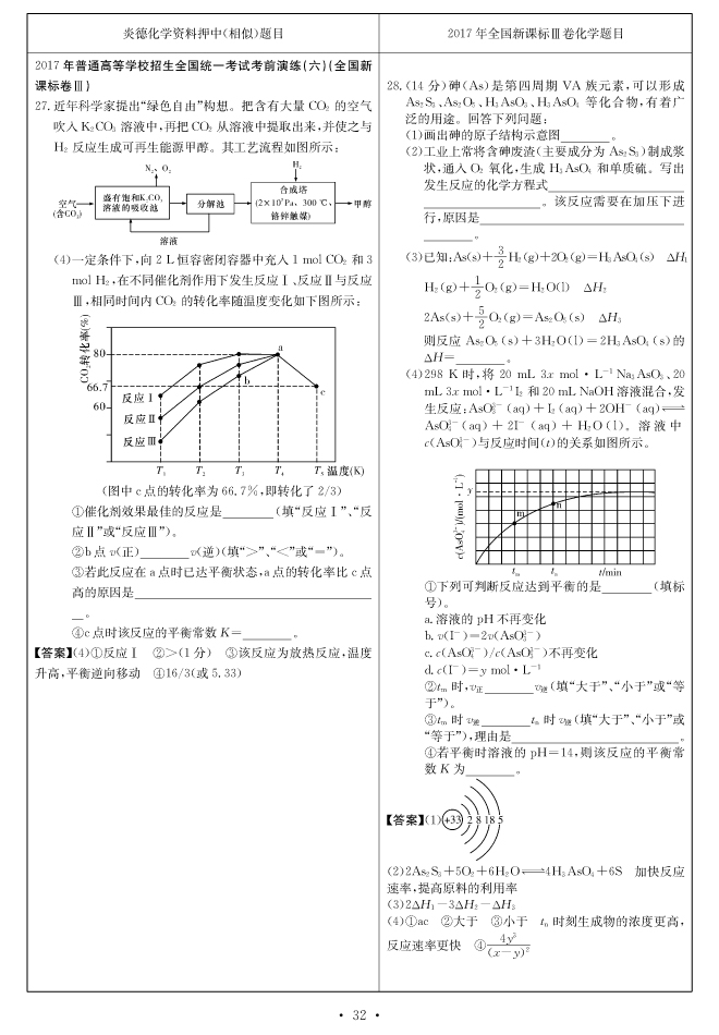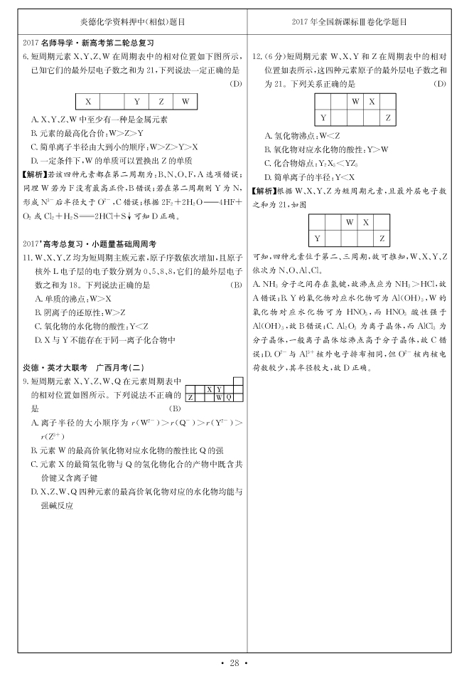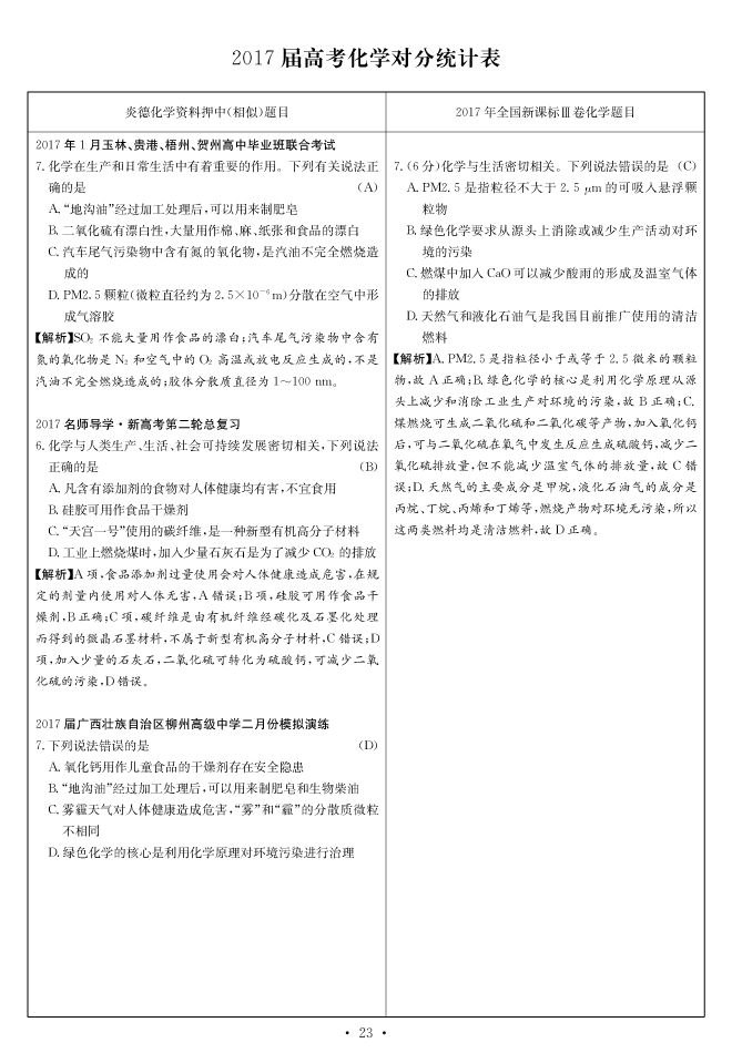 2017高考全國卷Ⅲ對(duì)分表-化學(xué)
