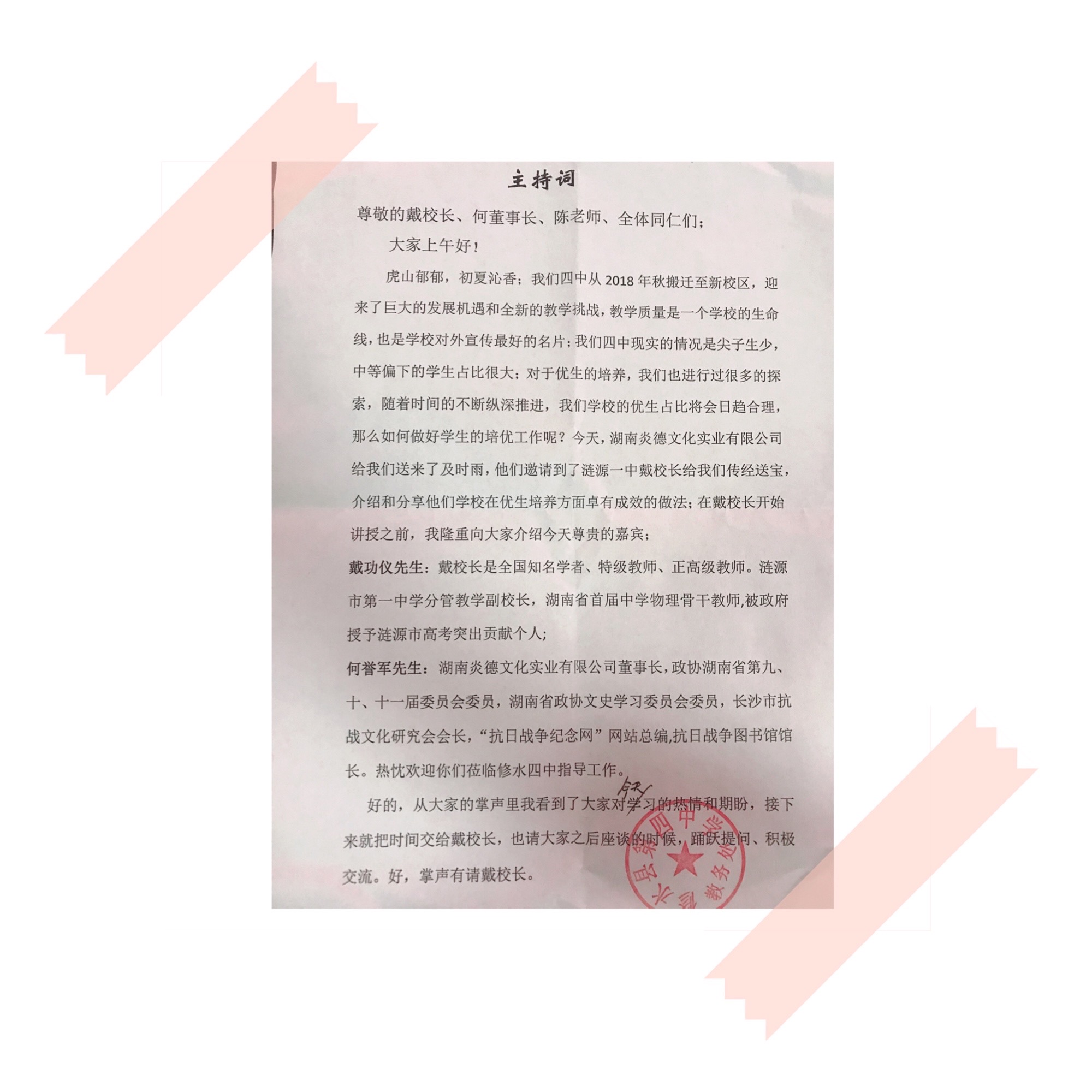 黃主任為本次座談會精心準備的主持詞