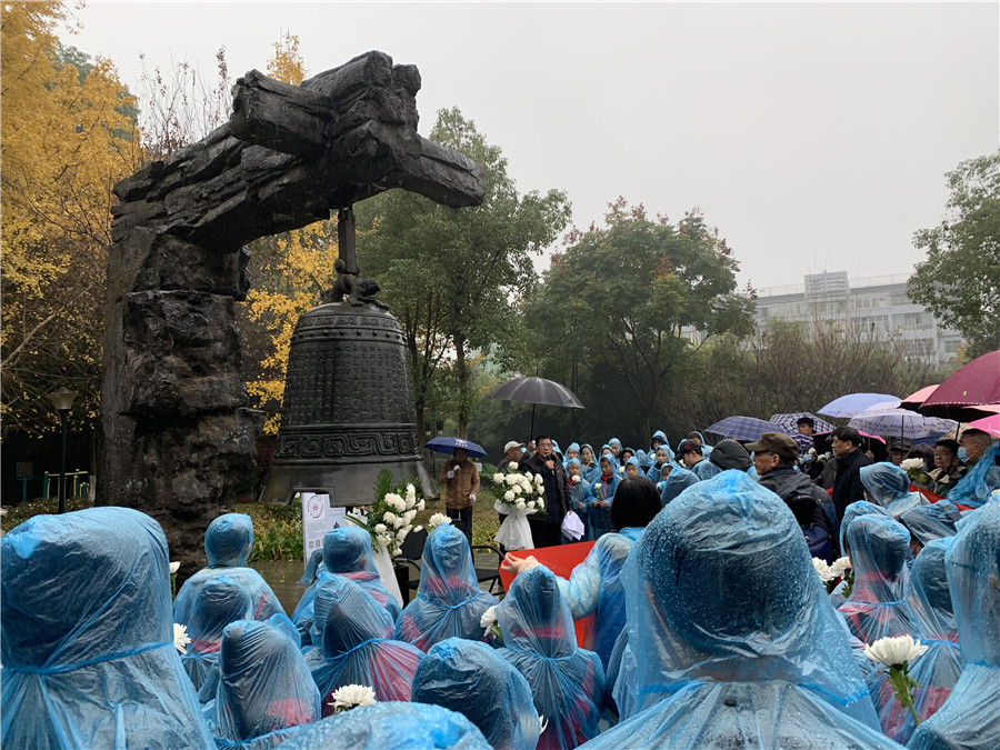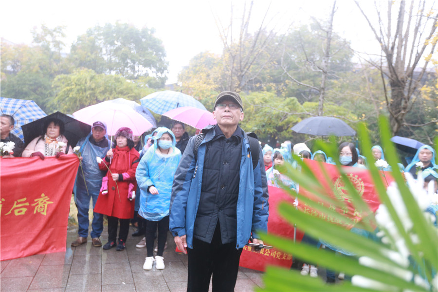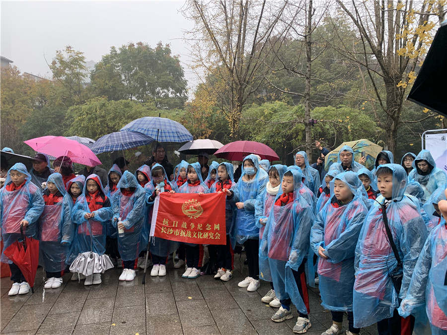 12月13日上午十點,長沙市抗戰文化研究會發起的緬懷抗戰英烈和悼念文夕大火罹難平民儀式在天心公園警世鐘下舉行。參加舉辦本次活動的還有深圳市龍越慈善基金會、湖南省黃埔軍校同學會、長沙市黃埔后裔聯誼會、長沙天心閣公園管理處、抗日戰爭紀念網、抗日戰爭圖書館、星城實驗三小(中嶺小學)、長郡月亮島第二小學、長沙關愛抗戰老兵志愿服務隊、長沙關愛抗戰老兵秋天班、湖南炎德文化實業有限公司、湖南炎德文化實業有限公司黨支部。參加活動的嘉賓還有原湖南省政協副主席、中國國民黨革命委員會第十二屆中央委員會委員劉曉、抗戰老兵陳忠民、房可吉。共有上述舉辦單位的領導、志愿者、學生、老師、黃埔后裔以及市民共計三百余人冒雨參加了本次活動!