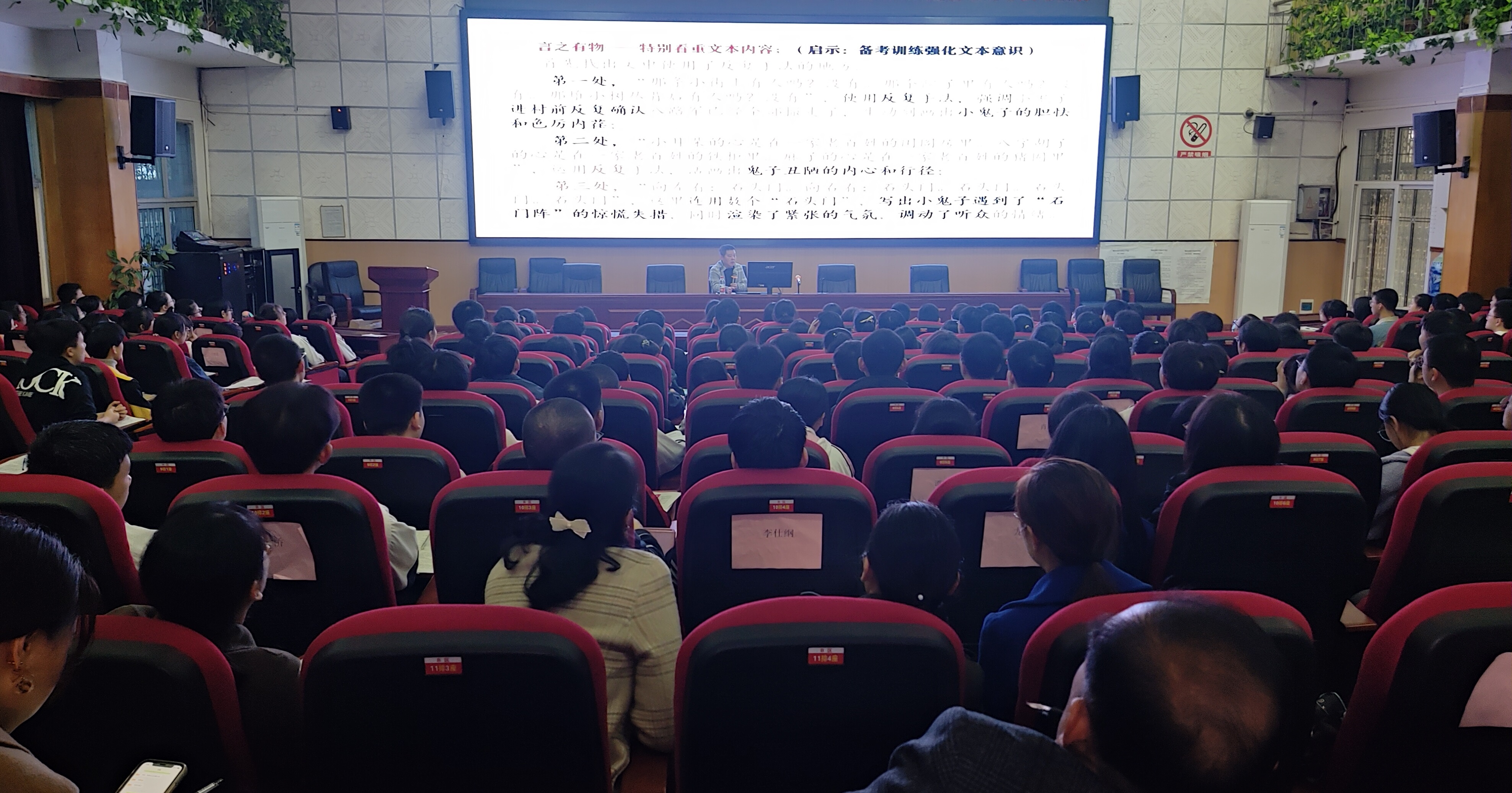 高三年級學(xué)生及全體語文老師到場聆聽、學(xué)習(xí)。