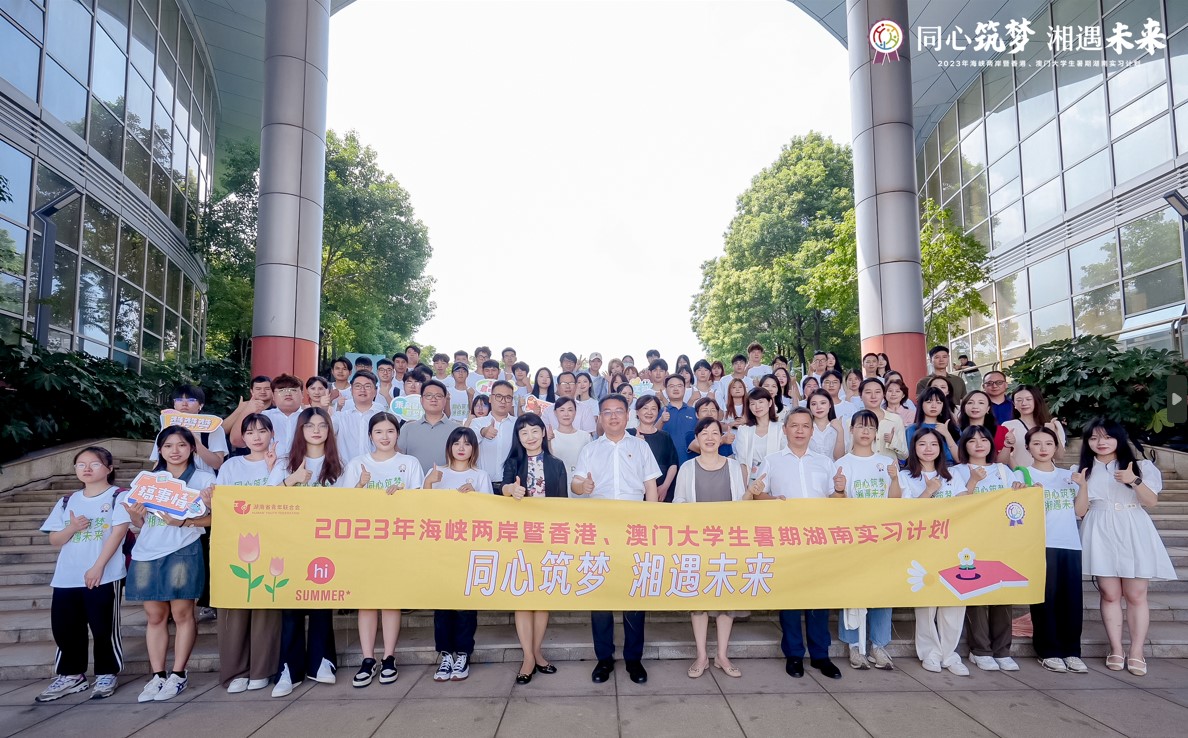 “同心筑夢 湘遇未來”2023海峽兩岸暨香港、澳門大學生暑期實習計劃由中華全國青年聯合會指導,湖南省委統戰部、湖南省委臺灣工作辦公室、湖南省人民政府港澳事務辦公室、共青團湖南省委、湖南省青年聯合會主辦,長沙市青年聯合會協辦。港澳臺大學生暑期湖南實習計劃已歷經11載,在祖國發展巨變的十年里,共接收來自臺灣、香港、澳門等地共有588名大學生進入湖南100余家企事業單位進行暑期實習,累計提供崗位1846個,旨在增進港澳臺大學生對祖國的熱愛和對湖南的了解,促進湖湘青年與港澳臺青年深入交流與合作,架起湖南青年與港澳臺青年心靈互通、事業互助、文化互融、命運互聯的“伙伴”橋梁,將幫助港澳臺青年在湘就業創業,為他們成長成才創造更多機會,為助推港澳臺青年融入湖南發展,同心協力為建設現代化新湖南貢獻青春力量。