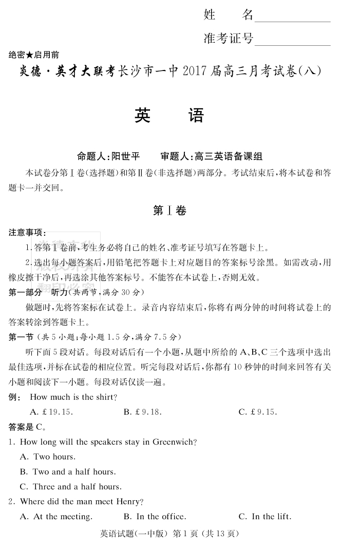 | 資源類別: | 名校月考 | |