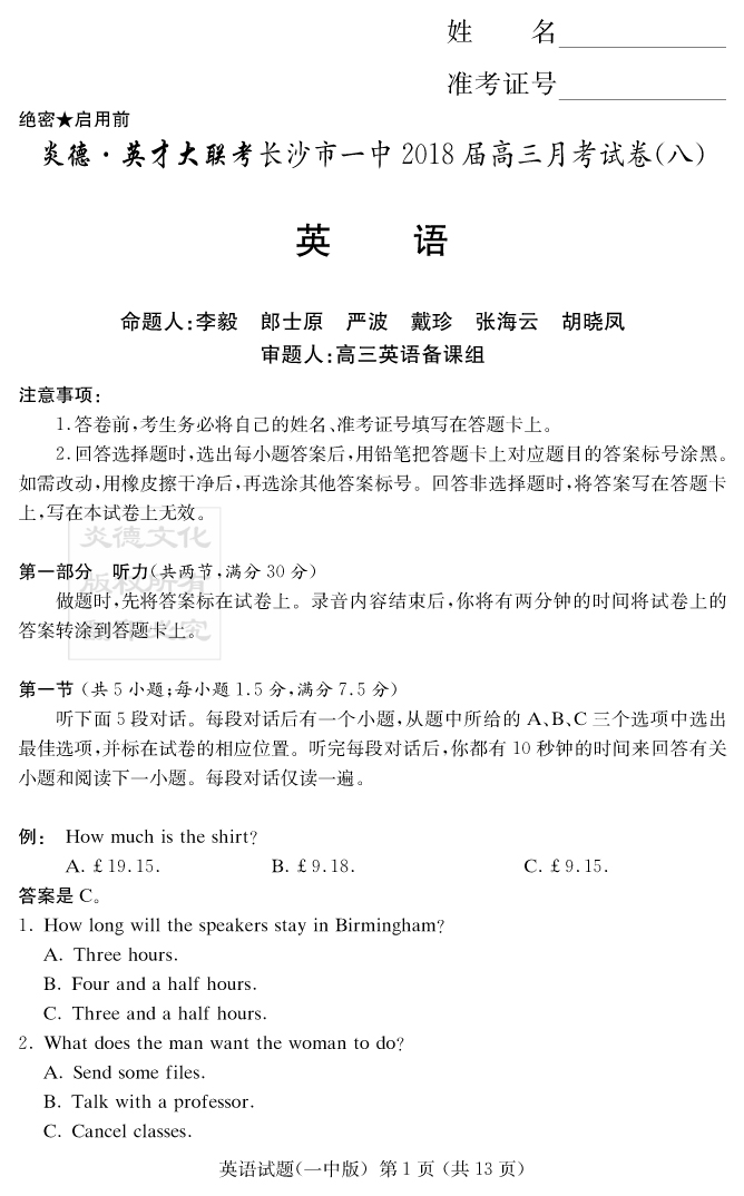 | 資源類別: | 名校月考 | |