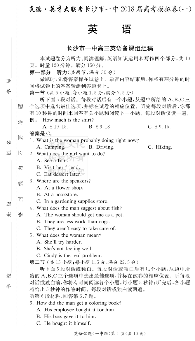 下一篇:【語文】炎德英才大聯考2018長沙一中高三10次月考(模擬一)